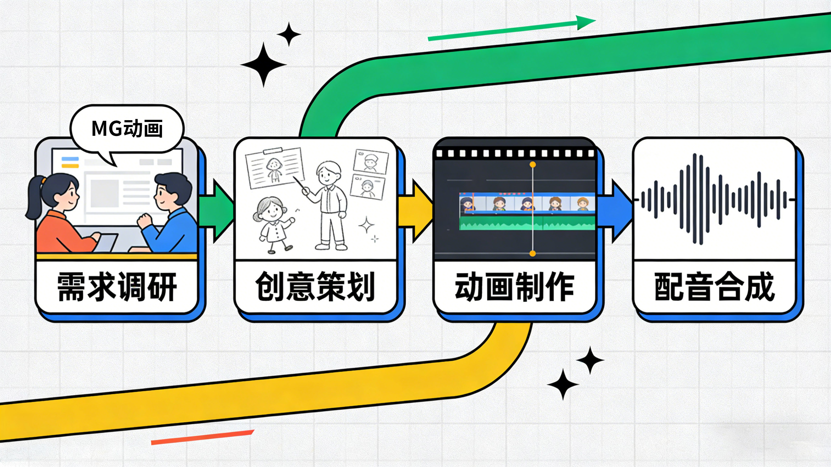 从需求调研、创意策划到动画制作、配音合成,一站式解决方案,核心团队全程跟进;