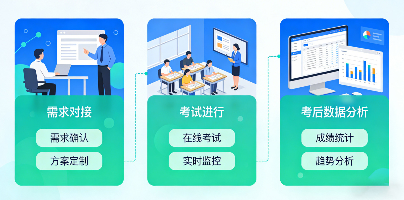 而学校、培训机构、企业每年为组织考试,需付出高昂成本:一场100人的考试,需筹备3间60㎡以上考场,配备6名监考、3-5名命题人员、3名阅卷老师,消耗200份试卷,从命题到阅卷全程至少耗时30天。纸张印刷费、场地租赁费、人员劳务费,再加上难以估量的时间成本,已成为各类组织的沉重负担。