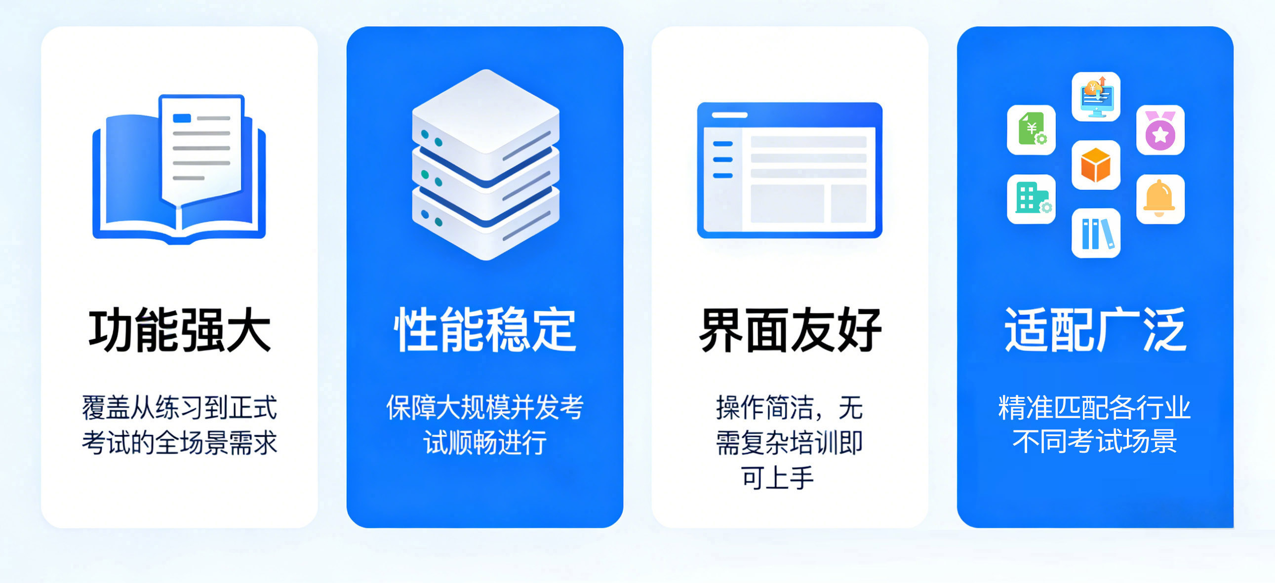 功能强大:覆盖从练习到正式考试的全场景需求;